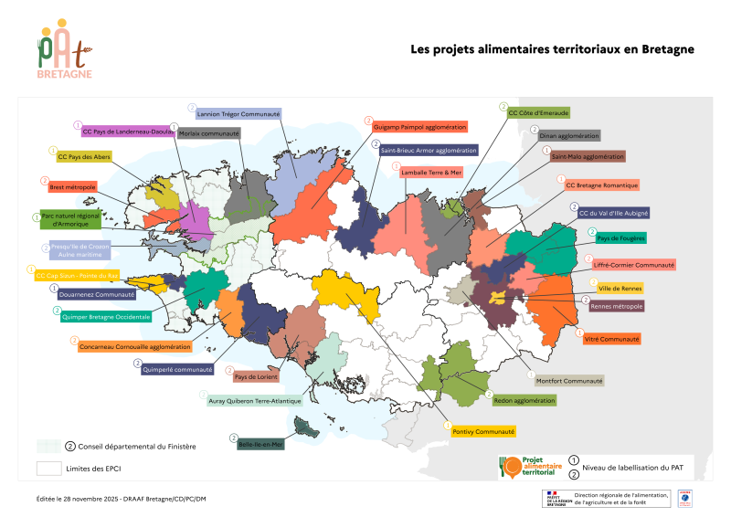 La Bretagne est un territoire dynamique en ce qui concerne les projets alimentaires territoriaux : 28 PAT sont labellisés.