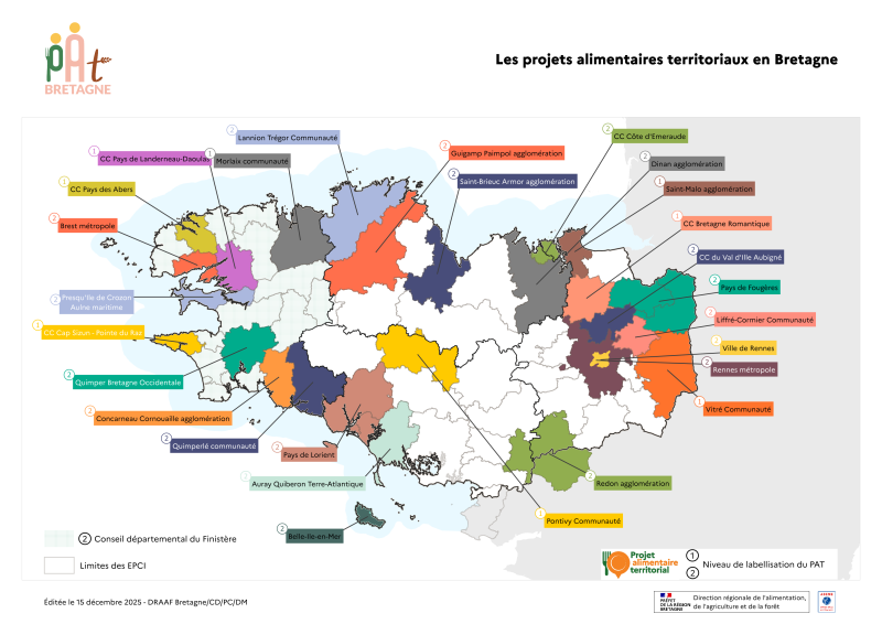 La Bretagne est un territoire dynamique en ce qui concerne les projets alimentaires territoriaux : 28 PAT sont labellisés.
